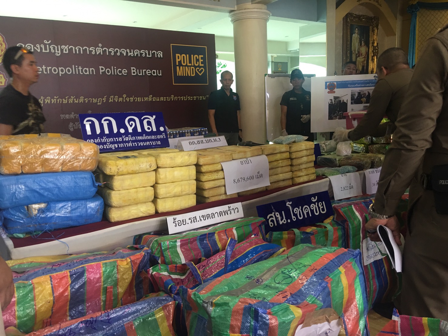 พลตำรวจเอกเฉลิมเกียรติ ศรีวรขาน รองผู้บัญชาการตำรวจแห่งชาติ แถลงผลจับกุมเยาชนชายอายุ 17 ปี พร้อมยึดยาบ้า 8,679,600 เม็ด ไอซ์ 37 กิโลกรัม อี 2,822 เม็ด ยาเคแบบผง 38 กิโลกรัม ยาเคบรรจุขวด 569 ขวด ได้จากห้องพักในอพาร์ทเม้นท์ ซอยลาดปลาเค้า 37
