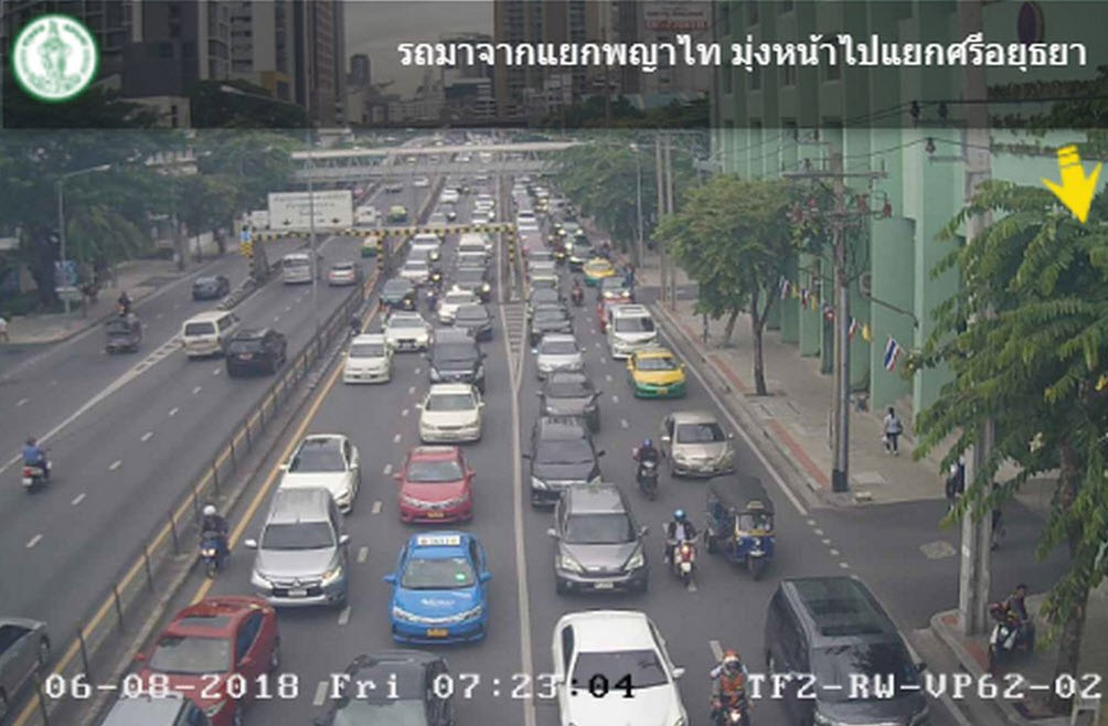 ถนนศรีอยุธยา ขาออก ไปแยกศรีอยุธยา รถติดขัด ท้ายสะสมอยู่ที่หน้า รพ.พญาไท 1