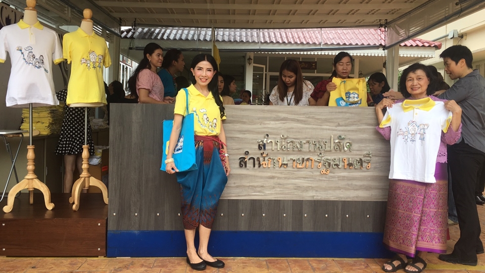 ผู้สื่อข่าวรายงานว่า วันนี้ (8 มิ.ย.) นางพัชราภรณ์ อินทรียงค์ ปลัดสำนักนายกรัฐมนตรี นำเสื้อโปโลสีเหลืองและสีขาว จากร้านจิตอาสา 904 เป็นเสื้อลายฝีพระหัตถ์ สมเด็จพระเจ้าอยู่หัวมหาวชิราลงกรณ บดินทรเทพยวรางกูร มาจำหน่ายด้านหน้าสำนักงานปลัดสำนักนายกรัฐมนตรี โดยลายเสื้อเป็นภาพวาดฝีพระหัตถ์ การละเล่นอย่างไทยหลากหลาย ราคาตัวละ 299 บาท นอกจากนี้ยังมีกระเป๋าผ้ามาจำหน่ายด้วย ซึ่งรัฐบาลเชิญชวนให้แต่งกายด้วยเสื้อผ้าโทนสีเหลือง โดยเฉพาะในช่วงเดือนกรกฎาคม เนื่องในโอกาสมหามงคลเฉลิมพระชนมพรรษา สมเด็จพระเจ้าอยู่หัว 66 พรรษา 28 กรกฎาคม 2561