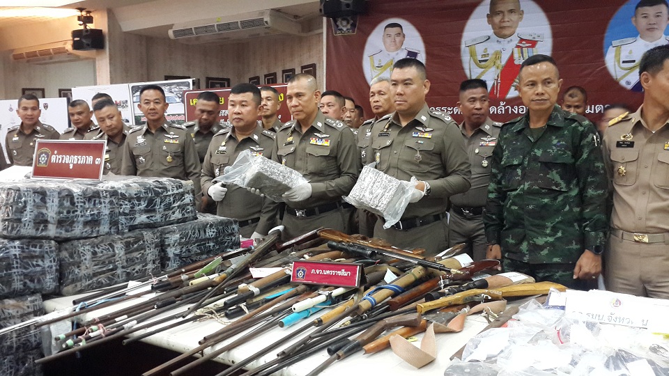 4. จับกุมอาวุธปืน 201 ราย ผู้ต้องหา 205 คน ของกลางอาวุธปืน 208 กระบอก กระสุนปืน 367 นัด ระเบิดปิงปอง 8 ลูก 5. คดียาเสพติด 2,272 ราย ผู้ต้องหา 2,312 คน ของกลางยาบ้า 233,589 เม็ด ไอซ์ 205.16 กรัม กัญชาแห้ง 420 กิโลกรัม กัญชาสด 29 ต้น พืชกระท่อม 45 ใบ.-สำนักข่าวไทย