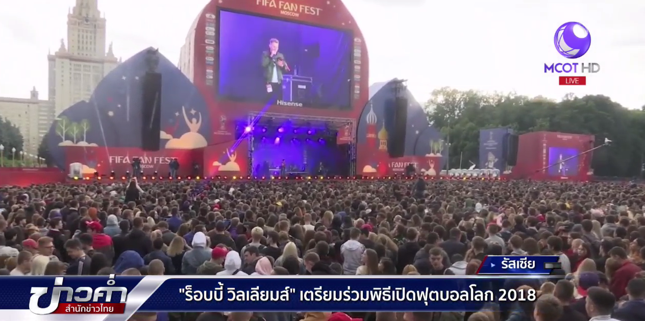 สหพันธ์ฟุตบอลนานาชาติ หรือฟีฟ่า แถลงผ่านเว็บไซต์ว่า ในพิธีเปิดการแข่งขันฟุตบอลโลก 20187 ที่รัสเซีย วันที่ 14 มิถุนายนนี้ นอกจากจะมีการแสดงที่ตระการตาแล้ว ยังจะมี 3 ซูเปอร์สตาร์ดังของโลกมาร่วม ประกอบด้วย ร็อบบี้ วิลเลียมส์ ศิลปินนักร้องชื่อดังชาวอังกฤษ อดีตวง Take That, ไอดา การิฟูลลินา นักร้องสาวเสียงโซปราโนชื่อดังชาวรัสเซีย และ “เหยินใหญ่” โรนัลโด อดีตนักฟุตบอลทีมชาติบราซิลชุดแชมป์โลก 2 สมัยในปี 1994 และ 2002 จะเข้าร่วมในพิธีเปิดครั้งนี้ ซึ่งหลังพิธีเปิดก็จะเป็นฟุตบอลคู่เปิดสนาม ระหว่างรัสเซีย เจ้าภาพ พบซาอุดีอาระเบีย