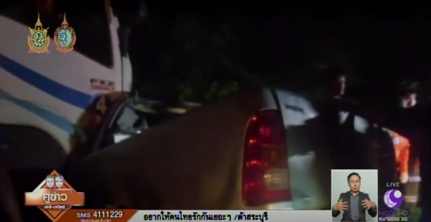 ที่เกิดเหตุ เป็นถนนสายหลักระหว่าง อ.สมเด็จ – อ.คำม่วง พบรถกระบะ Toyota Vigo สีบรอนซ์ทอง ทะเบียน ชภ 7862 สภาพพังยับเยิน ซึ่งด้านหน้าของรถกระบะติดคาอยู่กับระบรรทุกพ่วง 18 ล้อ Isuzu Deca 360 ทะเบียน 82-3939 กาฬสินธุ์ ทะเบียนลูกพ่วง 82-3940 กาฬสินธุ์ ซึ่งสภาพรถได้รับความเสียหายเพียงเล็กน้อย โดยคาดว่าจะชนประสานงากันอย่างแรง ตรวจสอบพบในรถกระบะมีผู้เสียชีวิตทันที 3 ศพ เป็นครอบครัวพ่อ แม่ ลูก ซึ่งเจ้าหน้าที่กู้ภัยฯ ได้ระดมเครื่องมือตัดถ่างนำร่างออกจากซากรถ และหลังจากการตรวจสอบเอกสารพบว่าผู้เสียชีวิตทั้ง 3 ราย เป็นพ่อ แม่ และลูก