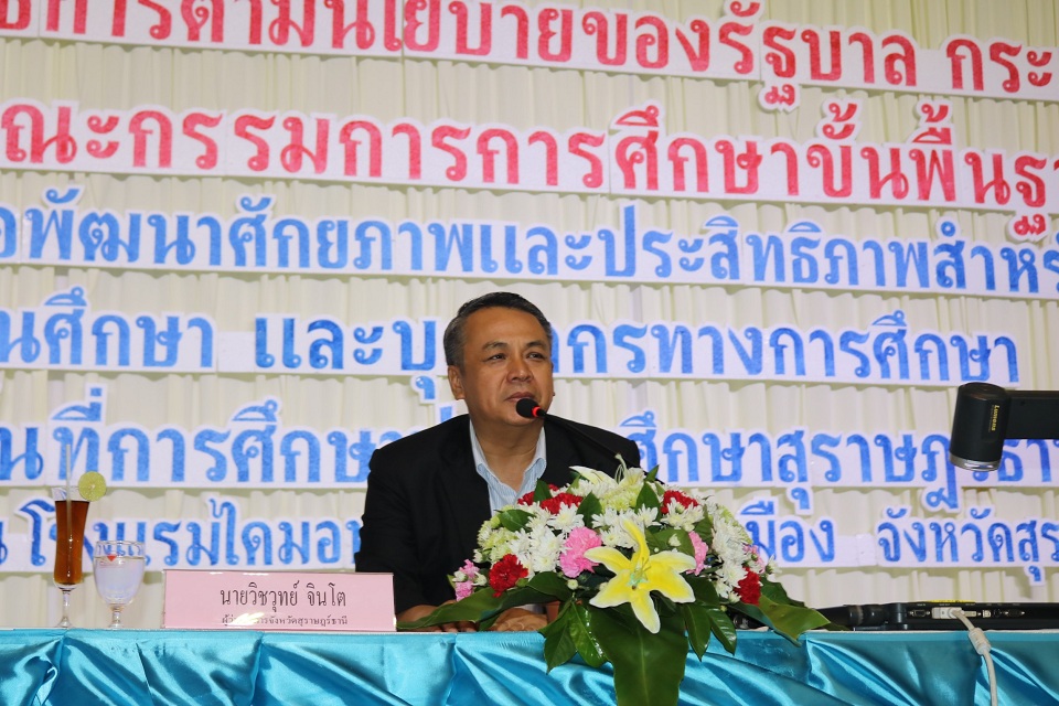 วันนี้ (13 มิ.ย.) ที่โรงแรมไดมอนด์ อ.เมือง จ.สุราษฎร์ธานี นายวิชวุทย์ จินโต ผู้ว่าราชการจังหวัดสุราษฎร์ธานี เป็นประธานการประชุมและมอบนโยบายกับข้าราชการครูในสังกัดเขตพื้นที่การศึกษาประถมศึกษา (สพป.) สุราษฎร์ธานี เขต 1 โดยมีนายชูศักดิ์ ชูช่วย ผอ.สพป.สุราษฎร์ธานี เขต 1 ผู้บริหารการศึกษา และข้าราชการครูเข้าร่วมกว่า 1,000 คน