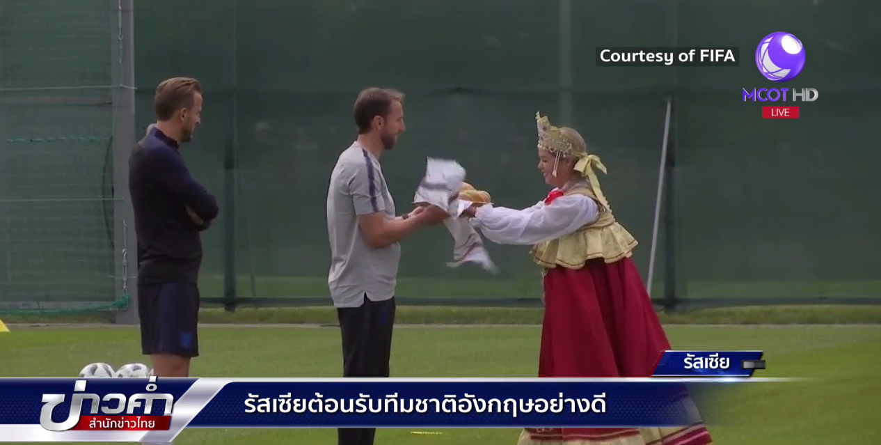 คุยมอฟ อเล็กซี่ หัวหน้าเขตปกครองท้องถิ่นของเมืองเซนต์ปีเตอร์สเบิร์กในรัสเซีย ต้อนรับทีมชาติอังกฤษอย่างอบอุ่น ในสนาม Spartak Zelenogorsk ด้วยการมอบของที่ระลึกให้กับแกเร็ธ เซาธ์เกต กุนซือของทีม และแฮร์รี่ เคน กัปตันทีม แม้ก่อนหน้านี้ทั้ง 2 ประเทศมีความขัดแย้งเรื่องการเมืองก็ตาม ในศึกฟุตบอลโลก 2018 อังกฤษอยู่กลุ่ม G นัดแรกพบกับตูนิเซีย ที่สนามโวลโกกราด วันจันทร์ที่ 18 มิถุนายนนี้