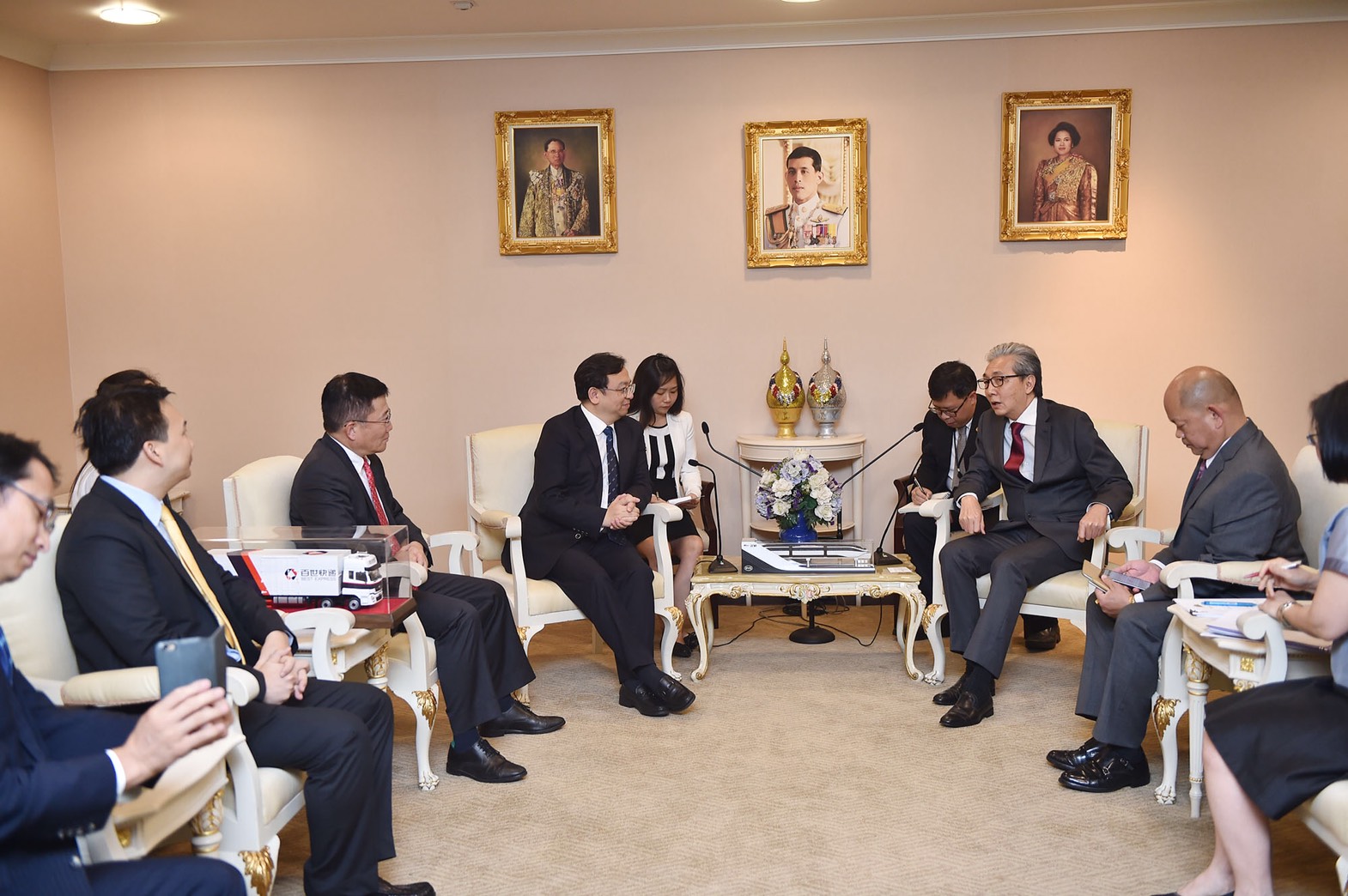 นายสมคิด จาตุศรีพิทักษ์ รองนายกรัฐมนตรี หารือกับนาย Wang Chuanfu ประธานบริหาร บริษัท BYD จำกัด เพื่อเข้ามาขยายการลงทุนในไทย เนื่องจาก BYD เป็นผู้ผลิตขบวนรถไฟฟ้า รถบรรทุก แบตเตอรี่ รายใหญ่ที่สุดของจีนและยังผลิตรถไฟฟ้ารายใหญ่ของโลก เมื่อเห็นรัฐบาลไทยมีแผนก่อสร้างรถไฟฟ้าหลายเส้นทาง จึงพร้อมนำขบวนรถไฟฟ้าโมโนเรลขนาดรางเบาเข้ามาขยายการลงทุนในประเทศตามหัวเมืองสำคัญ เช่น ในเขตพัฒนาพิเศษภาคตะวันออก (อีอีซี) สำหรับสร้างเมืองใหม่ รวมทั้งเมืองเชียงใหม่ ภูเก็ต หรือเมืองอื่น ๆ ที่มีแผนสร้างรถไฟฟ้าแบบรางเบา เพื่อถ่ายทอดเทคโนโลยีให้กับไทย นอกจากนี้ ยังเป็นบริษัทผลิตการเติมไฟฟ้าในแบตเตอรี่ได้อย่างรวดเร็ว การผลิตแบตเตอรี่ประจุไฟฟ้าสูง รองรับรถไฟฟ้าที่เกิดขึ้นในเมืองไทยในอนาคต ขณะนี้ได้ร่วมลงทุนกับ AJ ผลิตรถแท็กซี่ไฟฟ้าเตรียมนำเข้ามาให้บริการในเมืองไทย 100 คัน ช่วงสิ้นปีนี้