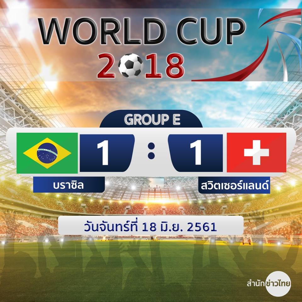 ฟุตบอลโลก 2018 รอบแบ่งกลุ่มรอบแรก นัดแรกของกลุ่ม E ที่สนามรอสตอฟ อารีนา ในเมืองรอสตอฟออนดอน ประเทศรัสเซีย บราซิล แชมป์โลก 5 สมัย พบ สวิตเซอร์แลนด์ นาทีที่ 20 บราซิล ขึ้นนำไปก่อนจากลูกยิงไกลสุดสวยของ ฟิลิปเป คูตินโญ จบครึ่งแรกบราซิลนำ 1-0