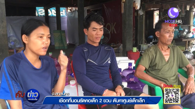 สกลนคร 18 มิ.ย.-สลด เชือกที่นอนรัดคอเด็กชายวัย 2 ขวบเสียชีวิต ขณะรอผู้ปกครองมารับที่ศูนย์เด็กเล็ก จ.สกลนคร ด้านพ่อแม่ยอมรับไปรับลูกช้าทำเกิดเหตุสลด ฝากเป็นอุทาหรณ์