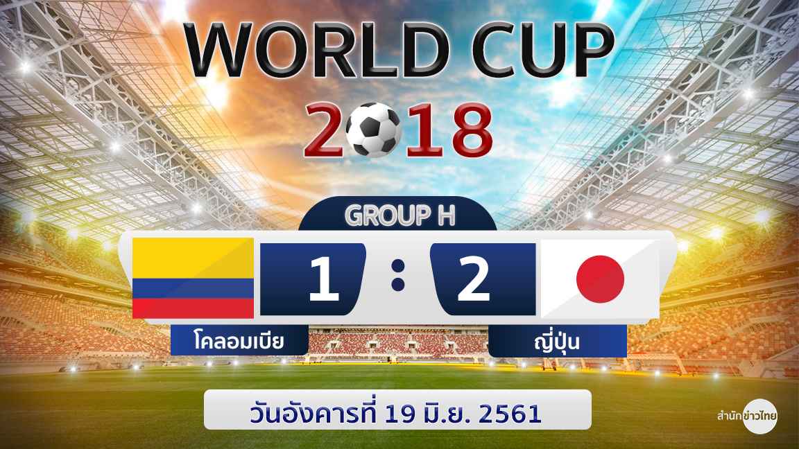 รัสเซีย 19 มิ.ย.-ญี่ปุ่น เบียดชนะ โคลอมเบีย ที่เหลือ 10 คน สกอร์ 2-1 สร้างประวัติศาสตร์เป็นทีมแรกของเอเชียที่ชนะทีมจากอเมริกาใต้ในศึกฟุตบอลโลก