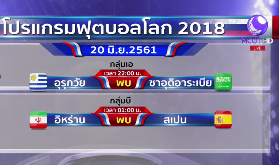 รัสเซีย 20 มิ.ย.-ฟุตบอลโลกคืนนี้คู่ดึกมีเตะ 2 คู่ โดยอุรุกวัย เล่นเพียงแค่เสมอซาอุดีอาระเบีย จะเข้ารอบกับรัสเซียทันที ส่วนอีกคู่สเปน ต้องการ 3 แต้ม คาดใช้ผู้เล่นชุดเดิมรับมืออิหร่าน