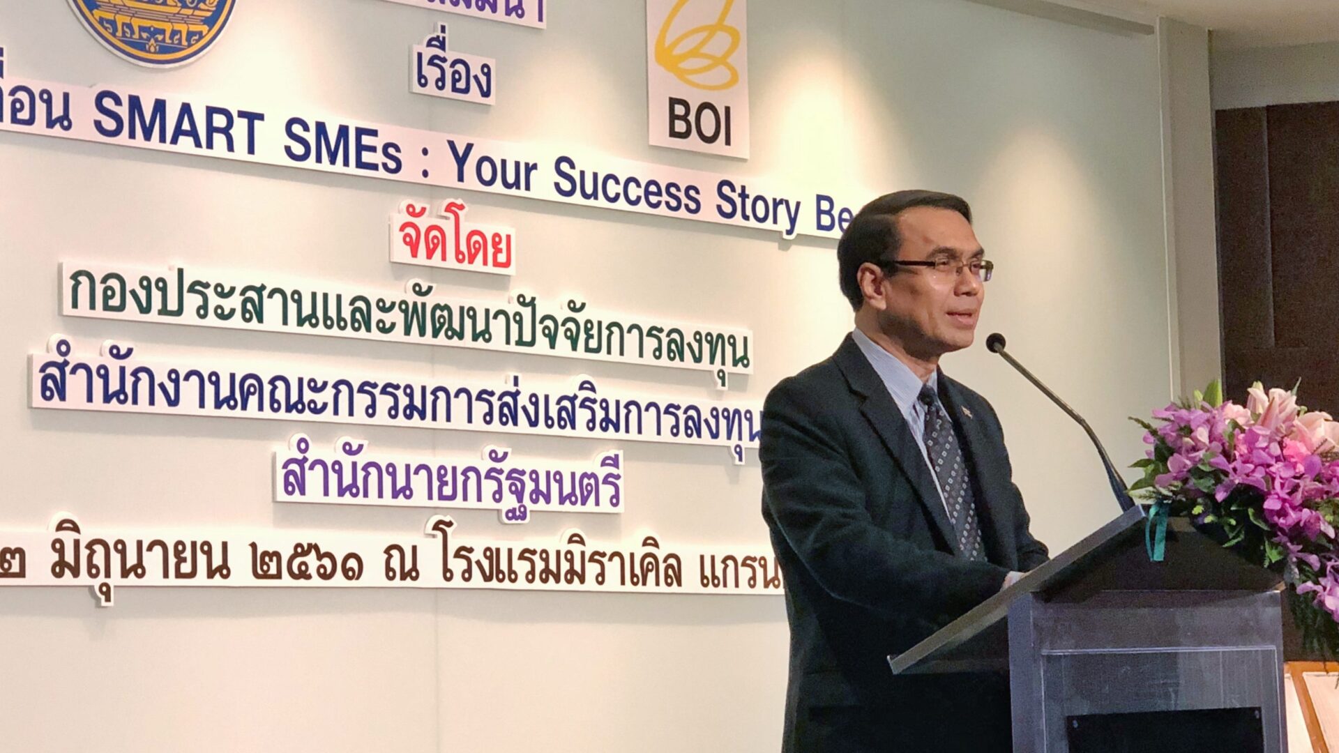 นายโชคดี แก้วแสง รองเลขาธิการ คณะกรรมการส่งเสริมการลงทุน (บีโอไอ) เปิดสัมมนา “พลังขับเคลื่อน Smart SMEs :Your Success Begins” โดยระบุว่าปัจจุบันเอสเอ็มอีคิดเป็นร้อยละ 90 ของผู้ประกอบการในประเทศไทย จำเป็นต้องเพิ่มศักยภาพและขีดความสามารถในการแข่งขัน ด้วยการเน้นสร้างนวัตกรรม และนำเทคโนโลยีใหม่ ๆ เข้ามาใช้ในการดำเนินธุรกิจ เพื่อลดต้นทุนและก้าวสู่อุตสาหกรรมยุค 4.0 ซึ่งในช่วง 3 เดือนที่ผ่านมาผู้ประกอบการรายใหญ่ยื่นขอรับส่งเสริมการลงทุนตามมาตรการปรับปรุงประสิทธิภาพการผลิต 33 โครงการ วงเงินลงทุนรวม 1,500 ล้านบาท แบ่งเป็นการปรับปรุงประสิทธิภาพการใช้พลังงาน 23 โครงการ วงเงินลงทุน 1,100 ล้านบาท การเปลี่ยนเครื่องจักร 10 โครงการ ลงทุน 396 ล้านบาท