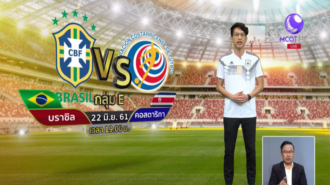 รัสเซีย 22 มิ.ย.61- ฟุตบอลโลก 2018 คืนนี้ คู่เอก เป็นการวนกลับมาเตะกันเป็นนัดที่ 2 ของกลุ่มอี บราซิล เต็งแชมป์พบกับคอสตาริกา ในเวลา 19.00 น.
