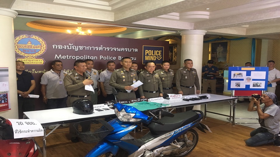 พลตำรวจตรีสมพงษ์ ชิงดวง รองผู้บัญชาการตำรวจนครบาล แถลงจับกุมนายสราวุธ จันทร์แจ่ม อายุ 18 ปี พร้อมเยาวชนชาย อายุ 16 ปี อีก 2 คนที่ร่วมกันขี่จักรยานยนต์ซ้อนท้ายออกตระเวนใช้อาวุธปืนลูกซอง ไทยประดิษฐ์ จี้ชิงทรัพย์ รถจักรยานยนต์ โทรศัพท์สมาร์ทโฟน และเงินสดจากประชาชนตามริมถนนรัชดา ภิเษก และถนนพหลโยธินในพื้นที่ สน.พหลโยธิน และ สน.ห้วยขวาง เมื่อวันที่ 20 และ 22 มิถุนายน ที่ผ่านมา รวมทั้งหมด 4 คดี โดยตำรวจ สน.ห้วยขวาง สืบทราบว่าเมื่อก่อเหตุแล้วคนร้ายจะหลบหนีเข้าบ้านพัก ในซอยนวมินทร์ 26 เขตบึงกุ่ม จึงได้นำกำลังบุกเข้าจับกุม โดยมีผู้ร่วมขบวนการอีก 1 คน ยังอยู่ระหว่างการหลบหนี