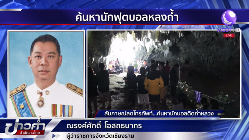เชียงราย 24 มิ.ย. – นายณรงค์ศักดิ์ โอสถธนากร ผู้ว่าราชการจังหวัดเชียงราย เผยความคืบหน้าการลงพื้นที่ติดตามค้นหาโค้ชและนักฟุตบอล 12 คน บริเวณถ้ำหลวง ด้วยตัวเอง กำชับทุกฝ่ายทำหน้าที่อย่างเต็มที่ เตรียมทีมแพทย์ให้พร้อมช่วยเหลือผู้สูญหายทันทีที่เจอตัว. – สำนักข่าวไทย