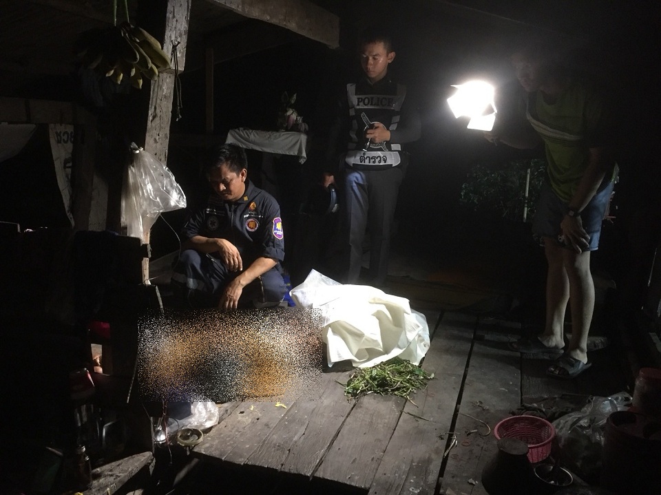 เมื่อเวลา 21.00 น. (24 มิ.ย.) ร.ต.อ.หญิง นฤมล ควรรำพึง ร้อยเวร สภ.เมืองปราจีนบุรี รับแจ้งเหตุจากผู้ใหญ่บ้านหมู่ 1 ตำบลไม้เค็ด ว่ามีผู้เสียชีวิตในบ้านพักไม่มีเลขที่กลางทุ่ง จึงประสานแพทย์เวรร่วมชันสูตรศพเป็นหญิง อายุ 52 ปี สภาพไม่สวมเสื้อ บริเวณลำคอมีรอยช้ำ คาดว่าเสียชีวิตมาประมาณ 2 ชั่วโมง นอกจากนี้ ยังพบสายไฟยาวประมาณ 2 เมตร และข้าวของกระจัดกระจาย เจ้าหน้าที่ได้รวบรวมไว้เป็นหลักฐาน