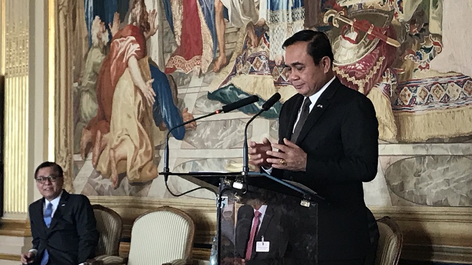 มนชนก พัฒนพงศ์ ผู้สื่อข่าวสำนักข่าวไทย ที่ติดตามภารกิจการเดินทางเยือนสาธารณรัฐฝรั่งเศส ของ พล.อ.ประยุทธ์ จันทร์โอชา นายกรัฐมนตรี ระหว่างวันที่ 22 – 25 มิถุนายน รายงานว่า นายกรัฐมนตรี ได้ร่วมงาน Bussiness Conference เพื่อชี้แจงนโยบายเศรษฐกิจ รวมถึง โอกาสและลู่ทางการลงทุนในประเทศไทย ให้กับนักธุรกิจฝรั่งเศส ที่เป็นสมาชิกสภานายจ้างฝรั่งเศส เชิญชวนให้มาลงทุนในประเทศไทย