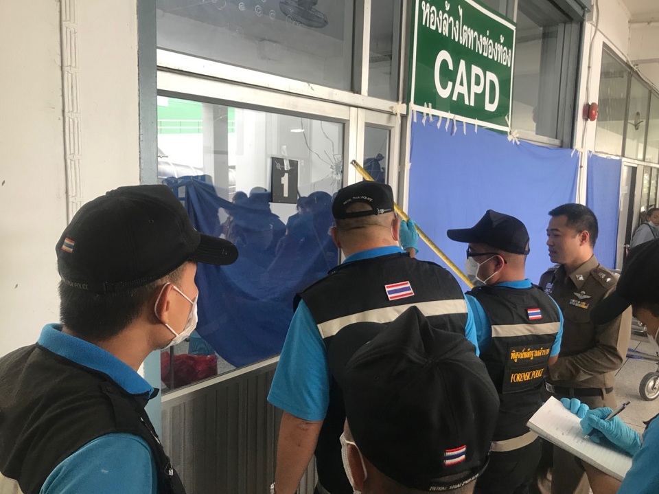 นนทบุรี 26 มิ.ย.- เกิดเหตุสลดใน รพ.พระนั่งเกล้า ชายวัย 41 ปี กระหน่ำยิงอดีตภรรยาเสียชีวิตในห้องทำงาน รพ.พระนั่งเกล้า ก่อนยิงตัวเองอาการโคม่า เจ้าหน้าที่พบปืนและปลอกกระสุนเก็บไว้เป็นหลักฐาน คาดสาเหตุหึงหวง