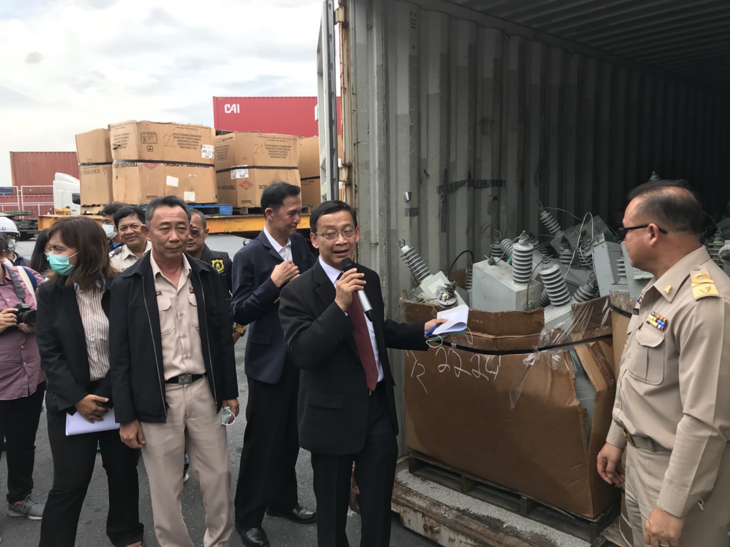 นายชัยยุทธ คำคุณ โฆษกกรมศุลกากร เปิดเผยว่า กรมศุลกากรร่วมกับกรมโรงงานออกประกาศชะลอการพิจารณาอนุญาตนำเข้าขยะอิเล็กทรอนิกส์ เศษพลาสติก เศษโลหะ ตั้งแต่ 22 มิถุนายนที่ผ่านมา แต่ยังมีการขออนุญาตนำเข้าก่อนหน้านี้ ผู้นำเข้าแจ้งนำเข้าผ่านท่าเรือคลองเตยต้องทำการตรวจสอบ 428 ตู้คอนเทนเนอร์ ส่วนท่าเรือแหลมฉบัง 1,000 ตู้ จึงร่วมกับกรมโรงงานเปิดตู้ตรวจสอบ นำเข้าขยะอิเล็กทรอนิกส์ เศษพลาสติก เศษโลหะ ทำผิดเงื่อนไข ไม่มีใบอนุญาต