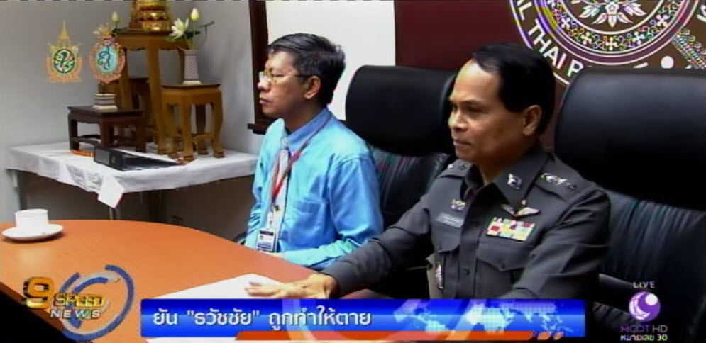 กทม. 23 ก.ย. – หลังสอบปากคำนายวรรณชัย พรหมรักษ์ รองผู้อำนวยการศูนย์พนักงานสอบสวนพิเศษชำนาญการ ดีเอสไอ นานกว่า 3 ชั่วโมง ผู้กำกับการ สน.ทุ่งสองห้อง เปิดเผยว่า การสอบปากคำในวันนี้มีประโยชน์ ได้สอบถามถึงขั้นตอนของดีเอสไอในการเบิกตัวนายธวัชชัย อนุกูล อดีตเจ้าหน้าที่ที่ดินพังงา มาสอบปากคำ หลังถูกจับกุม ก่อนจะเสียชีวิตในวันรุ่งขึ้น ยืนยันพบมีมูลที่นายธวัชชัยถูกผู้อื่นทำให้ตาย. – สำนักข่าวไทย