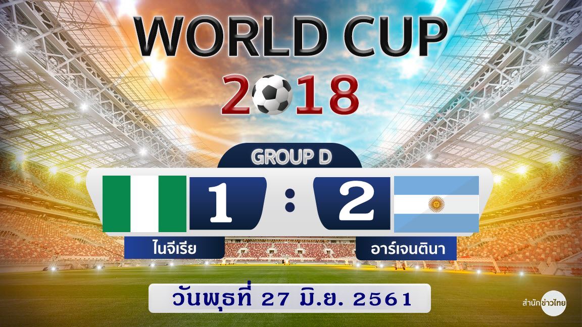 รัสเซีย 27 มิ.ย.-อาร์เจนตินาทำได้! เฉือนชนะ ไนจีเรีย 2-1 “เมสซี-โรโฮ” ซัดคนละลูก พาทีมเข้ารอบ 16 ทีม ไปพบฝรั่งเศส ขณะที่ ไอซ์แลนด์ โดนยิงนาทีสุดท้าย พ่าย โครเอเชีย 1-2 โครเอเชียครองแชมป์กลุ่ม เข้ารอบเจอเดนมาร์ก ส่วนไอซ์แลนด์จับมือไนจีเรียตกรอบ
