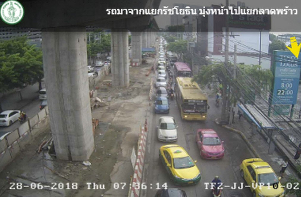 กทม. 28 มิ.ย.-สวพ.FM91 รายงานจราจรเช้าวันพฤหัสบดี ถนนพหลโยธิน ขาเข้า จากแยกรัชโยธิน มุ่งหน้าแยกลาดพร้าว รถมาก