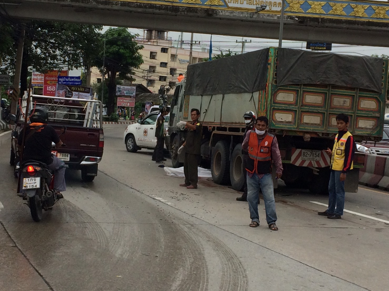 คนขับรถสิบล้อให้การว่า ขับรถบรรทุกดินมาจาก อ.องครักษ์ จ.นครนายก เพื่อมาถมในพื้นที่คลองสาม ขณะจอดรถรอสัญญาณไฟจราจรและขึ้นเป็นสีเขียว จึงแล่นรถออกพร้อมเร่งเครื่องยนต์ เพราะรถบรรทุกดินมีน้ำหนักมาก เป็นจังหวะเดียวกับรถจักรยานยนต์รับจ้างขับออกมาจากซอยตัดหน้ารถอย่างกะทันหัน สุดที่จะเบรคทัน จึงชนเต็มแรง