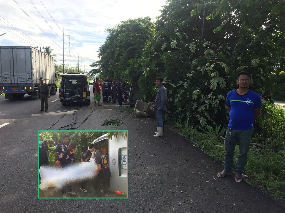 เมื่อเวลา 10.00 น. (1 ก.ค.) ร.ต.อ.เดช ประเสริฐศักดิ์ รองสารวัตร (สอบสวน) สภ.บางสะพาน จ.ประจวบคีรีขันธ์ รับแจ้งอุบัติเหตุรถตู้ ทะเบียน นข 2960 พิจิตร เสียหลักชนไม้ตกร่องกลางถนนเพชรเกษมขาเข้า กทม. หลัก กม.ที่ 378 – 379 ใกล้ที่ทำการองค์การบริหารส่วนตำบล (อบต.) ร่อนทอง จึงประสานเจ้าหน้าที่กู้ภัยมูลนิธิสว่างราษฎร์ศรัทธาธรรมสถานเข้าช่วยเหลือพบผู้เสียชีวิต 1 ราย เป็นหญิง อายุ 21 ปี และบาดเจ็บอีก 8 ราย รวมคนขับ เจ้าหน้าที่เร่งนำส่งโรงพยาบาลบางสะพา