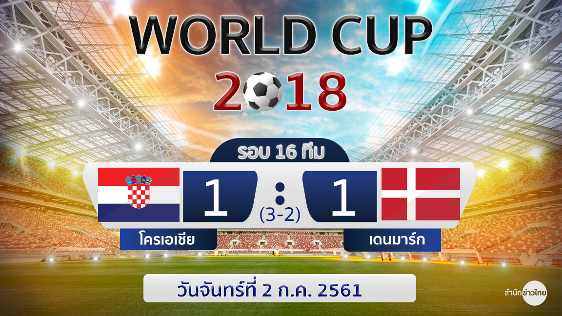 ฟุตบอลโลก 2018 รอบ 16 ทีมสุดท้าย ที่นิซนี่ นอฟโกรอด สเตเดี้ยม โครเอเชีย ชุดสีดำ พบกับ เดนมาร์ก เริ่มเกมได้เพียงแค่ 58 วินาที เดนมาร์ก มาได้ประตูขึ้นนำก่อน 1-0 จากจังหวะยิงของมาธิอัส ยอร์เกนเซ่น บอลไปชนขา ดานิเยล ซูบาซิช ผู้รักษาประตูโครเอเชียเข้าไป แต่นาทีที่ 3 โครเอเชีย มาได้ประตูตีเสมอ 1-1 จากจังหวะ ซิเม่ เวอร์ซัลจ์โก้ เปิดบอลเข้ามาในเขตโทษ และ เฮนริค ดาลสการ์ด เตะสกัดบอลกระดอนไปโดนศีรษะของ อันเดรียส คริสเตนเซ่น และบอลกระดอนมาเข้าทาง มานด์ ซูคิช ยิงเข้าไป จบ 90 นาทีทั้ง 2 ทีมทำอะไรเพิ่มไม่ได้เสมอกัน 1-1 ต้องต่อเวลาพิเศษออกไปครึ่งละ 15 นาที