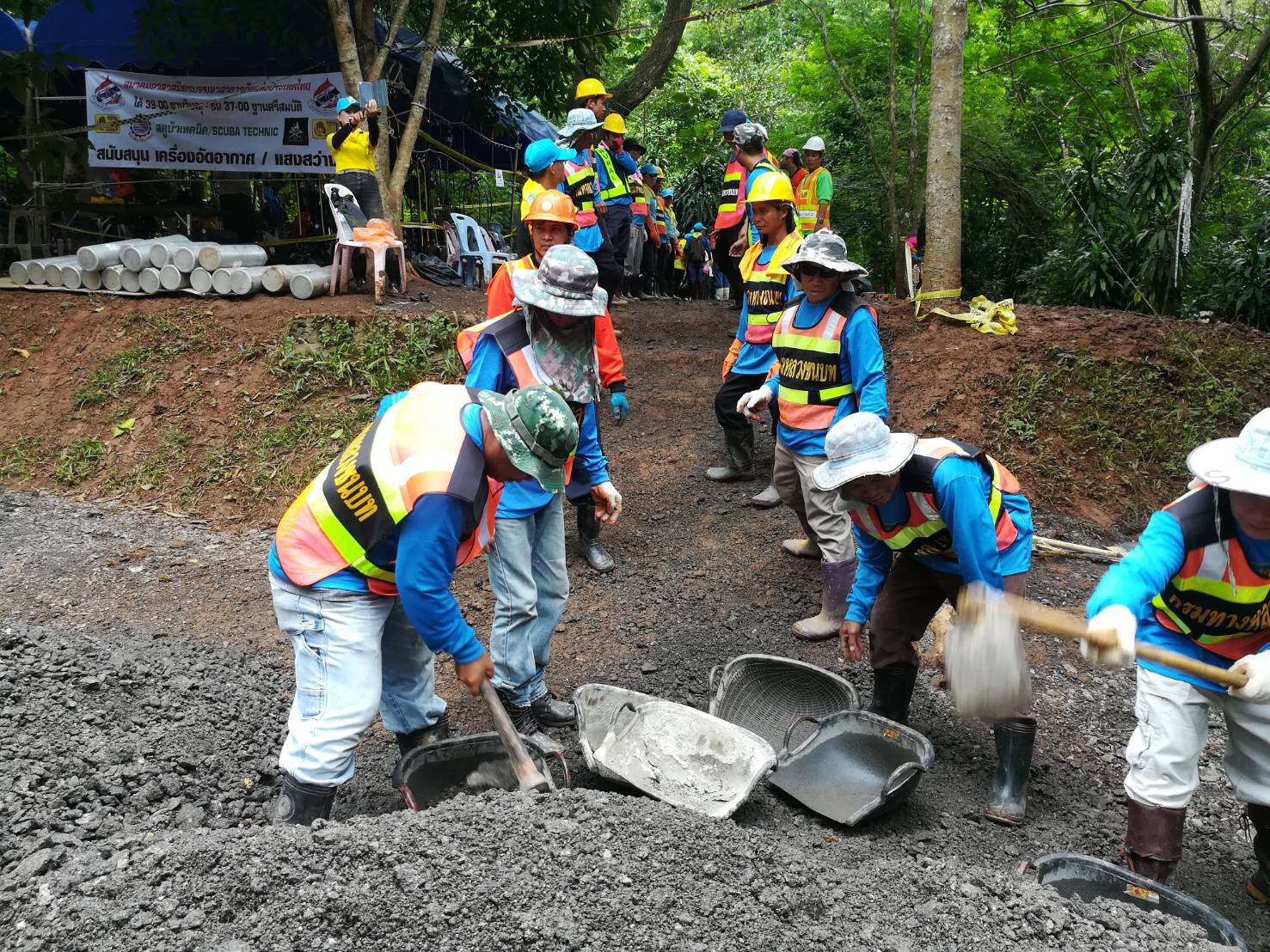 กรมทางหลวงชนบท โดยสำนักงานทางหลวงชนบทที่ 17 (เชียงราย) แขวงทางหลวงชนบทเชียงราย หมวดบำรุงทางหลวงชนบทแม่สาย ร่วมกับกรมทางหลวง ได้นำเจ้าหน้าที่เข้าไปปฏิบัติงานในการให้ความช่วยเหลือนักกีฬาฟุตบอลทั้ง 13 คน บริเวณถ้ำหลวง-ขุนน้ำนางนอน โดยวันนี้ (2 ก.ค.) ขนวัสดุปรับปรุงทางเดินเข้าในถ้ำ ซ่อมถนนทางเข้า-ออก ปรับพื้นที่บริเวณหน้าถ้ำ เพื่ออำนวยความสะดวกให้กับรถโรงพยาบาลที่จะใช้เป็นเส้นทางเคลื่อนย้ายผู้ป่วย รวมถึงหน่วยงานต่าง ๆ ในการปฏิบัติงานให้ความช่วยเหลือดังกล่าวด้วย