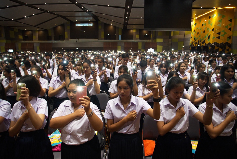 วันนี้ ( 2 ก.ค.) ที่หอประชุมมหาวิทยาลัยราชภัฏนครราชสีมา อ.เมือง จ.นครราชสีมา รศ.ดร.วิเชียร ฝอยพิกุล อธิการบดีมหาวิทยาลัยราชภัฏนครราชสีมา เป็นประธานปฐมนิเทศนักศึกษาใหม่ ภาคปกติ ระดับปริญญาตรี ประจำปีการศึกษา 2561 โดยมี คณะผู้บริหาร และคณาจารย์ และนักศึกษาใหม่เข้าร่วมกว่า 3,000 คน โดยก่อนเริ่มปฐมนิเทศทั้งหมดได้ร่วมกันกำมือขวาแนบอกซ้าย เปิดไฟฉายจากโทรศัพท์มือถือ เพื่อส่งพลังใจในการค้นหาโค้ชและเยาวชนทีมฟุตบอลหมูป่าอะคาเดมี่แม่สาย รวม 13 คน ติดอยู่ภายในถ้ำหลวง-ขุนน้ำนางนอน อ.แม่สาย จ.เชียงราย มาตั้งแต่วันที่ 23 มิ.ย.ที่ผ่านมา ซึ่งขณะนี้การทำงานของเจ้าหน้าที่ใกล้ถึงพื้นที่เป้าหมายบริเวณหาดพัทยา หลังจากระดมกำลังระบายน้ำออกจากถ้ำจนลดลง นอกจากนี้ ที่โรงเรียนบ้านจอหอ ต.จอหอ อ.เมือง จ.นครราชสีมา ครู-นักเรียนและนักฟุตบอลสวาทแคท อะคาเดมี รุ่นอายุ 13 ปี ร่วมกันแปรอักษรเป็นรูปหัวใจล้อมเลข 13 พร้อมตั้งจิตภาวนาส่งกำลังใจไปถึงถ้ำหลวง ขอให้ทุกคนเข้มแข็งและปลอดภัย