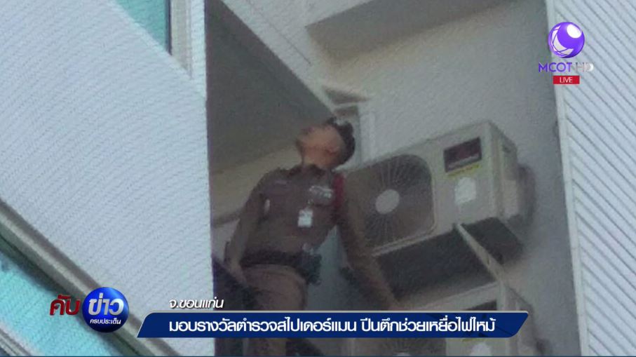 ขอนแก่น –มอบรางวัลรองสารวัตร สภ.เมืองขอนแก่น ปีนคอนโด 5 ชั้น ช่วยหญิงตั้งครรภ์ 8 เดือน พาคลานต่ำออกมาช่องทางหนีไฟ