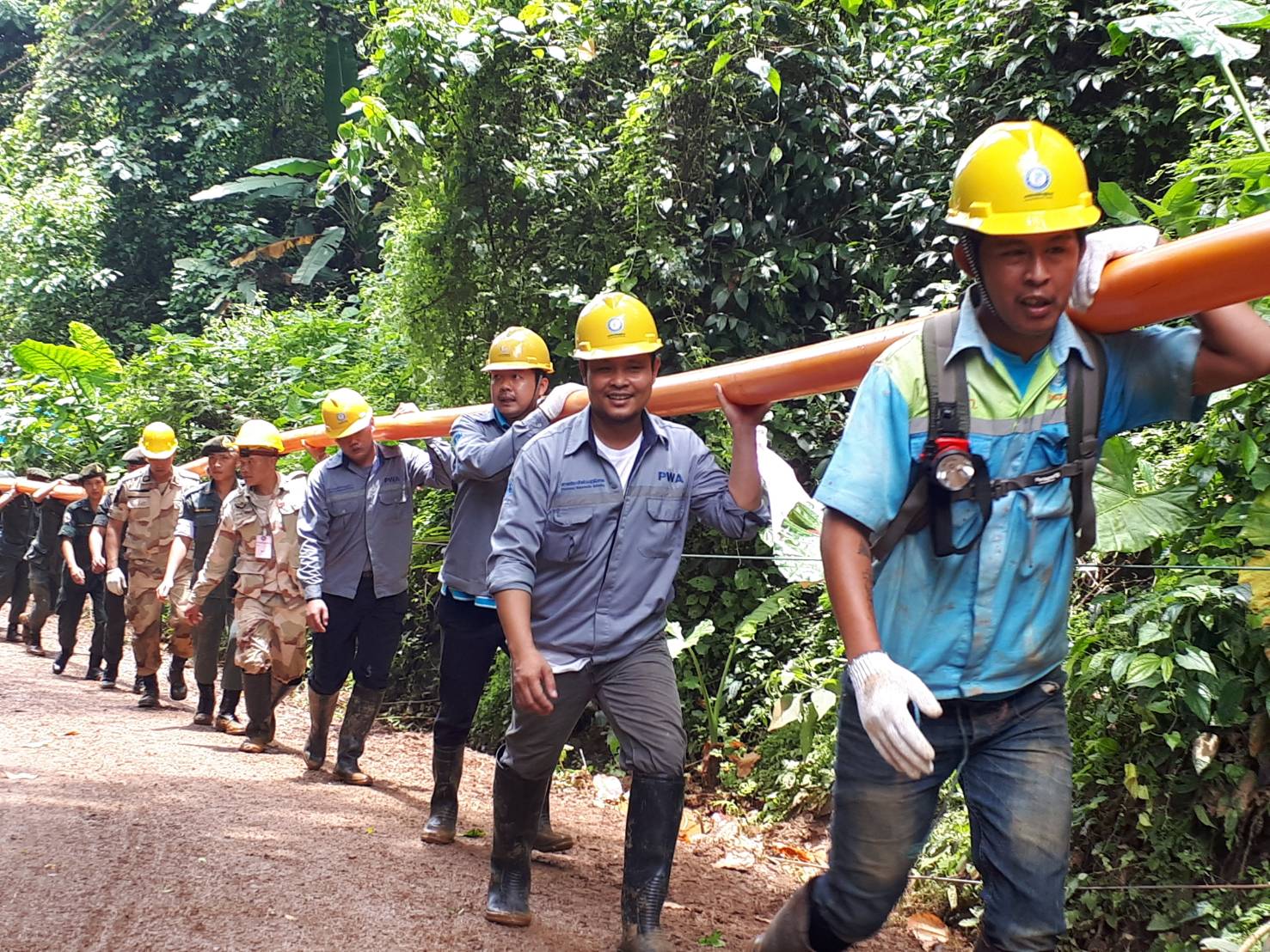 ให้เข้าสนับสนุนการปฏิบัติภารกิจช่วยเหลือนำครูผู้ฝึกสอนและนักฟุตบอลทีมหมูป่าอะคาเดมี 13 ชีวิต ออกจากถ้ำหลวง-ขุนน้ำนางนอน โดยนำทีมพนักงาน กปภ.ที่มีความเชี่ยวชาญด้านการเชื่อมประสานท่อ เครื่องกล และไฟฟ้า จาก กปภ.สาขาแม่สาย