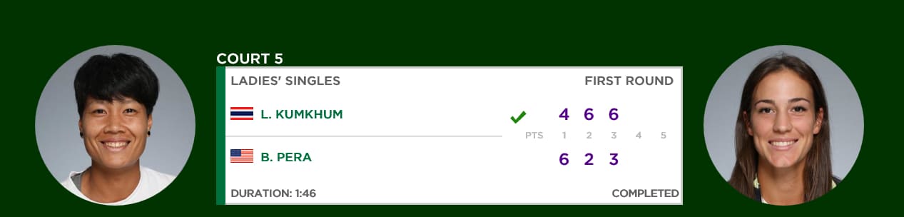 อิงแลนด์ ลอน เทนนิส คลับ ในกรุงลอนดอน ของอังกฤษ ประเภทหญิงเดี่ยว รอบแรก “น้องลัก”ลักษิกา คำขำ นักเทนนิสาวไทยมือ