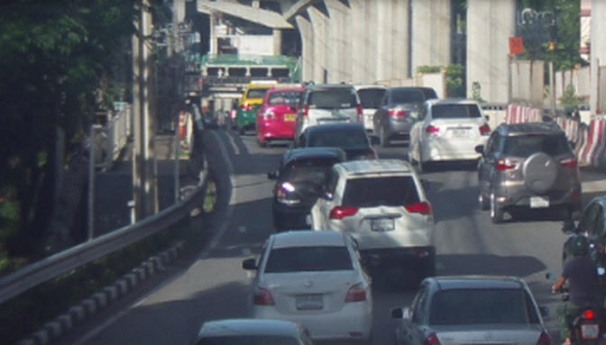 ถนนสิรินธร ขาเข้า ไปแยกบางพลัด ขึ้นสะพานกรุงธน รถติดขัดมาก ท้ายสะสมทางขึ้นสะพานข้ามแยกบางพลัด