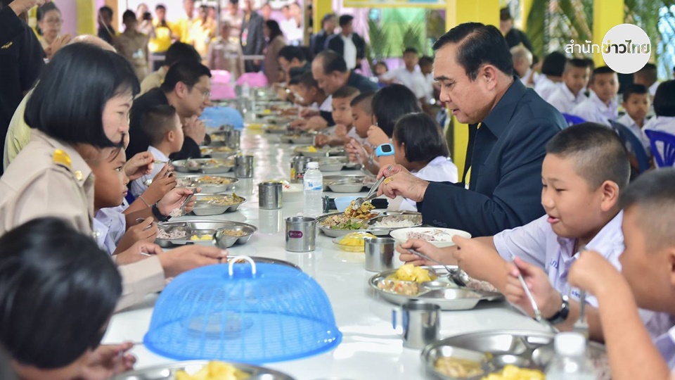 ระยอง 4 ก.ค.- นายกรัฐมนตรี รับประทานอาหารกลางวันร่วมกับนักเรียน โรงเรียนวัดเกาะ จ.ระยอง ถามเด็กโตขึ้นอยากเป็นนายกฯ หรือไม่ เด็กบอกไม่อยากเป็น และถามนายกฯ ว่าทำไมอยากเป็นทหาร เผยงบประมาณอาหารกลางวันอาจไม่เพียงพอ แนะเด็กเพาะปลูกตามแนวทางในหลวงรัชกาลที่ 9 เสริมคุณภาพอาหารกลางวัน ฝากเด็กบอกผู้ปกครอง ร่วมมือโครงการไทยนิยมยั่งยืน ยืนยันไม่ใช่การเมือง