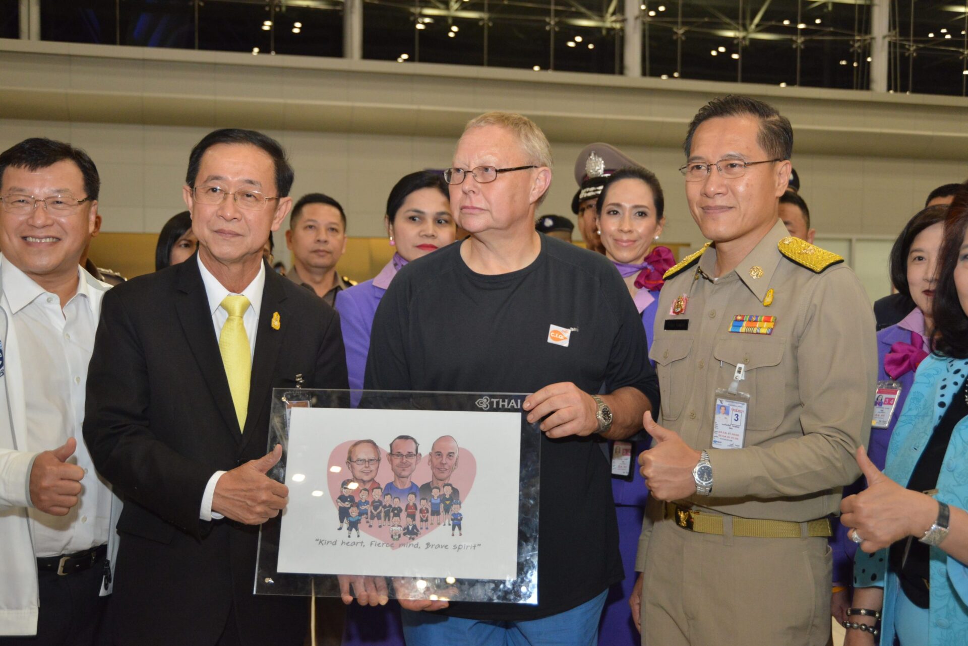 สนามบินสุวรรณภูมิ 4ก.ค.- รมว.ท่องเที่ยวฯ มอบใบประกาศนียบัตรให้ 1 ใน 3 นักดำน้ำอังกฤษ ก่อนบินกลับคืนนี้ เพื่อขอบคุณและตอบแทนน้ำใจที่ปฏิบัติภารกิจช่วยเหลือ13 ชีวิต ทีมหมูป่าอะคาเดมี ส่วนอีก 2 คน ยังช่วยภารกิจอยู่