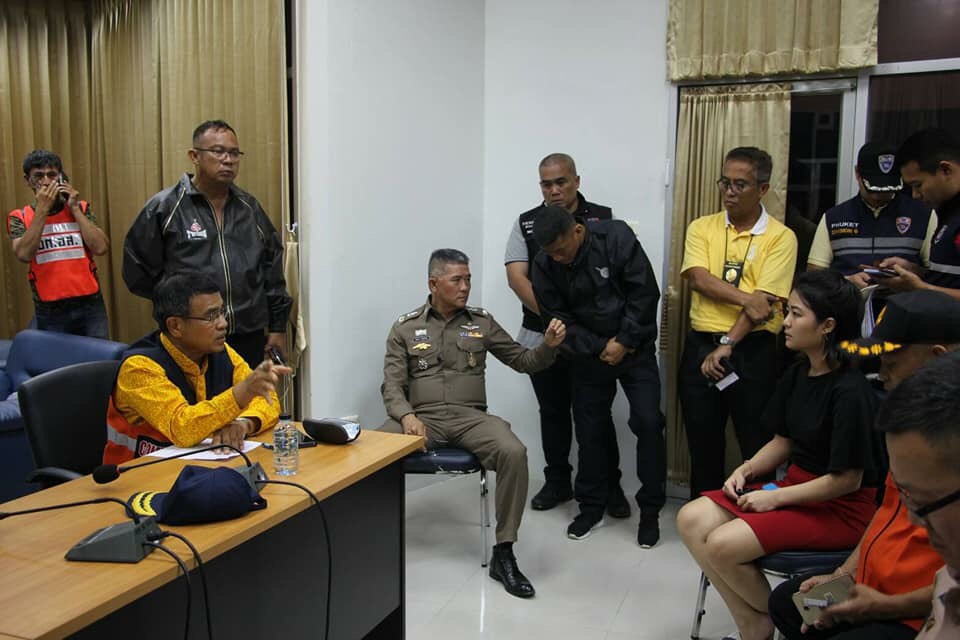 นายนรภัทร ปลอดทอง ผู้ว่าราชการจังหวัดภูเก็ต ได้ติดตามการช่วยเหลือผู้ประสบเหตุเรือล่มตลอดทั้งคืน พร้อมสรุปข้อมูลเป็นระยะ ที่ท่าเทียบเรืออ่าวฉลอง และเมื่อเวลา 01.08 น. วันนี้ (6 ก.ค.) ได้สรุปเหตุการณ์อีกครั้งว่า เรือฟินิกซ์ ไดฟ์วิ่ง ที่ล่มบริเวณเกาะเฮ มีผู้โดยสาร 93 คน ลูกเรือและไกด์ 12 คน รวมเป็น 105 คน ช่วยเหลือแล้ว 51 คน ขึ้นฝั่งที่ท่าเรือแพยอด ส่งไปโรงพยาบาล อบจ. 10 คน และพบศพแล้ว 1 คน เป็นชาวจีน ที่เหลือกำลังค้นหาอีก 53 คน ส่วนเรือเซเนริก้า ล่มที่เกาะไม้ท่อน มีผู้โดยสาร 39 คน กัปตันและลูกเรือ 2 คน รวมเป็น 41 คน ช่วยเหลือได้ทั้งหมดแล้ว และเรือเจ็ตสกี 2 คน ช่วยเหลือได้แล้วเช่นกัน ขึ้นที่ท่าเรือแหลมพันวา