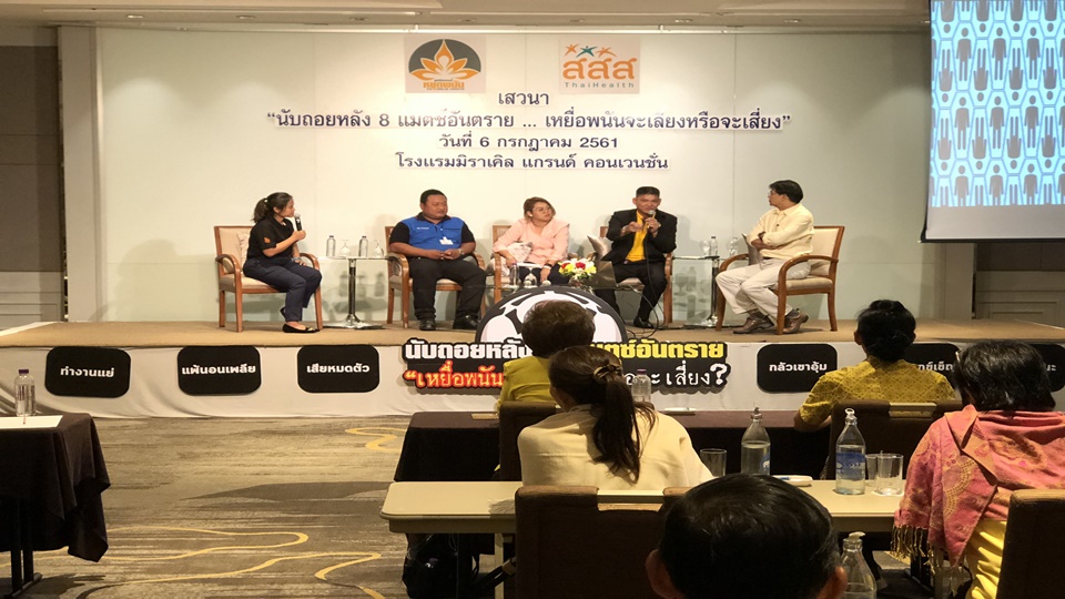 มูลนิธิรณรงค์หยุดพนัน ร่วมกับสำนักงานกองทุนสนับสนุนการสร้างเสริมสุขภาพ(สสส.) จัดเวทีเสวนา“นับถอยหลัง 8 แมตช์อันตราย เหยื่อพนันจะเลี่ยงหรือจะเสี่ยง?”นายธนากร คมกฤส เลขาธิการมูลนิธิรณรงค์หยุดพนัน กล่าวว่า ฟุตบอลโลก 2018 เหลือ 8 แมตช์สุดท้ายชี้ชะตา ซึ่งน่าห่วงว่ากระแสชวนพนันอาจขึ้นสูงไม่เฉพาะเด็กเยาวชน แต่กลุ่มคนวัยทำงานยิ่งมีเงินยิ่งมือเติบและเป็นคนกลุ่มใหญ่ที่เล่นพนันบอลมากกว่ากลุ่มเด็กเยาวชน ทั้งจำนวนคนเล่นและจำนวนเงินที่ใช้เล่น