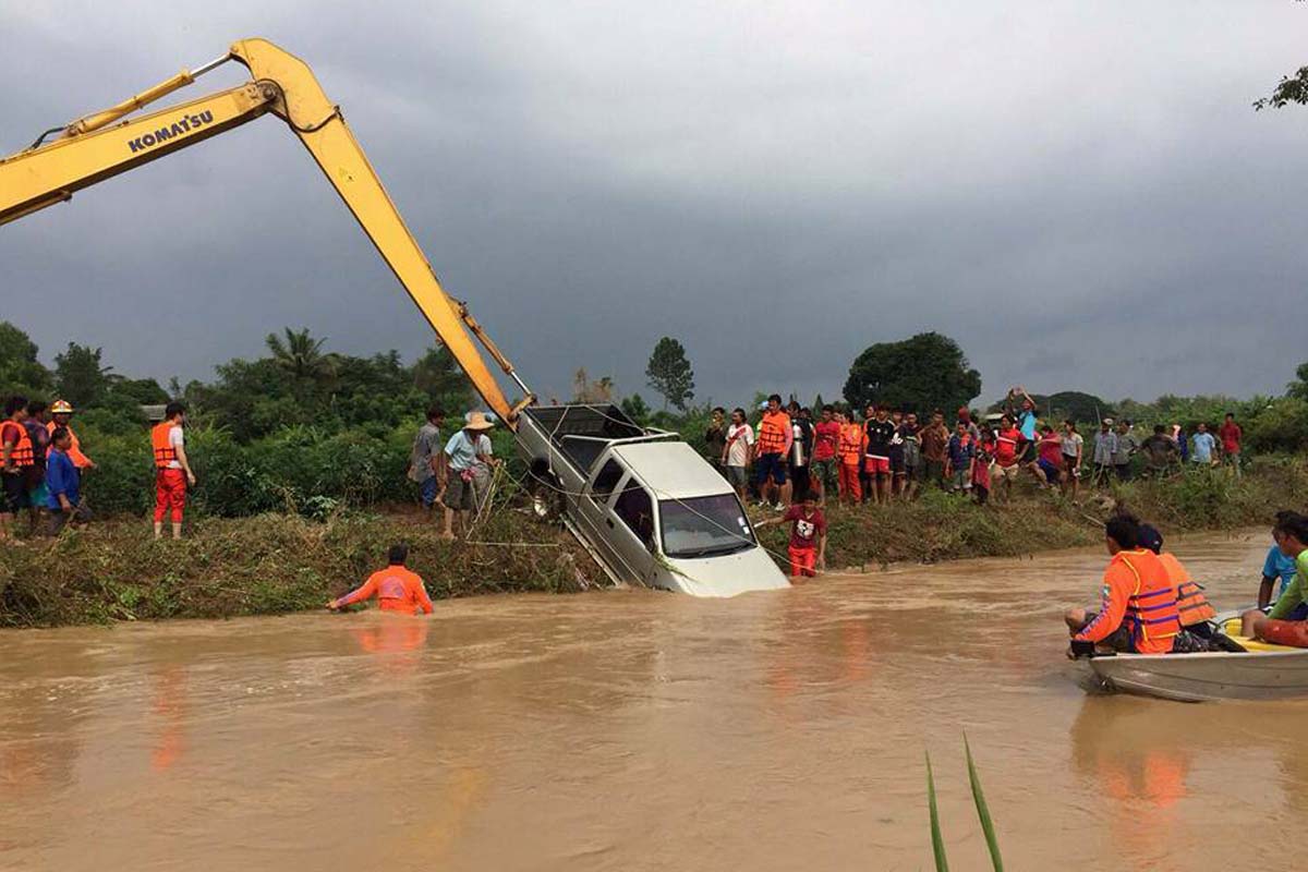 กาญจนบุรี 22 ก.ย.- รถกระบะแล่นฝ่าน้ำท่วมถนนหมู่บ้านเมืองกาญจนบุรีพลัดตกคลอง คนขับเสียชีวิต ขณะที่ 70 ครัวเรือนเดือดร้อนน้ำป่าหลากท่วม จนท.เร่งช่วยเหลือ