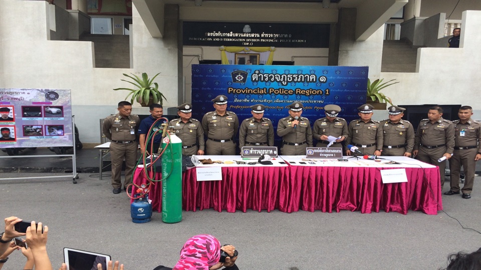 พล.ต.อ.เฉลิมเกียรติ ศรีวรขาน รอง ผบ.ตร. พร้อมด้วย พล.ต.ท.สุวัฒน์ แจ้งยอดสุข ผบช.ภ.1 แถลงจับกุมเครือข่ายโจรกรรมตู้เอทีเอ็ม โดยจับกุมผู้ต้องหาได้ในพื้นที่ตำรวจภูธรภาค 1 จำนวน 4 คน พร้อมของกลางรถยนต์ 3 คัน ถังแก๊สพร้อมหัวตัดและอุปกรณ์เจาะตู้เอทีเอ็ม 1 ชุด โทรศัพท์ 5 เครื่อง ทองคำรูปพรรณ 15 บาท และเงินสดอีกกว่า 300,000 บาท