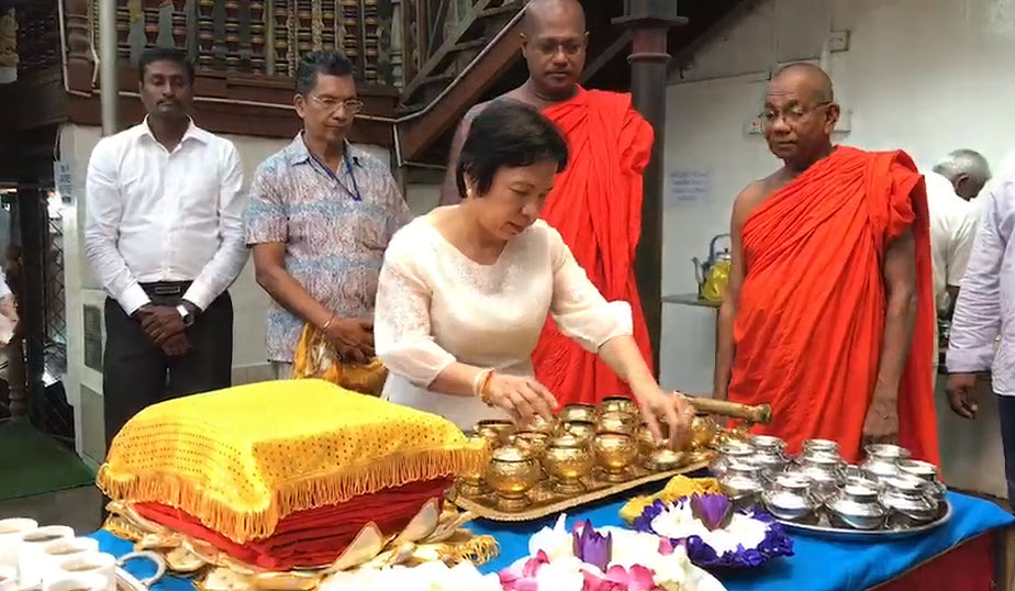 นางจุฬามณี ชาติสุวรรณ เอกอัครราชทูตไทย ณ กรุงโคลัมโบ ประเทศศรีลังกา เป็นตัวแทนคนไทยในศรีลังกา ทำบุญถวายน้ำปานะ ถวายจีวร 9 ผืน พร้อมเดินเวียนรอบต้นโพธิ์ 3 รอบ และ สรงน้ำต้นโพธิ์ ภายในวัดคงคาราม ประเทศศรีลังกา ทั้งเพื่ออุทิศส่วนกุศลให้กับ จ.อ.สมาน กุนัน หรือ “จ่าแซม” นักทำลายใต้น้ำจู่โจมนอกราชการ ที่เสียชีวิตจากการปฏิบัติหน้าที่เข้าไปช่วยเหลือทีมฟุตบอลหมูป่าอะคาเดมี่ ทั้ง 13 คน ที่ถ้ำหลวงขุนน้ำนางนอน จังหวัดเชียงราย โดยมีตัวแทน จากบริษัทการบินไทย จำกัด มหาชน และชาวศรีลังกาที่ทราบข่าวว่าจะมีพิธีทำบุญในวันนี้ ได้มาร่วมพิธีจำนวนมาก เนื่องจากคนศรีลังกามีความใกล้ชิดกับคนไทย และติดตามข่าวด้วยความห่วงใยอย่างต่อเนื่อง
