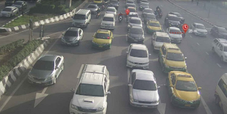 ถนนวิภาวดี-รังสิต ขาเข้า มุ่งหน้าใต้ด่วนดินแดง ทั้งช่องทางด่วน และคู่ขนาน รถเคลื่อนตัวได้ช้า ท้ายสะสมหน้าสถานโทรทัศน์ NBT