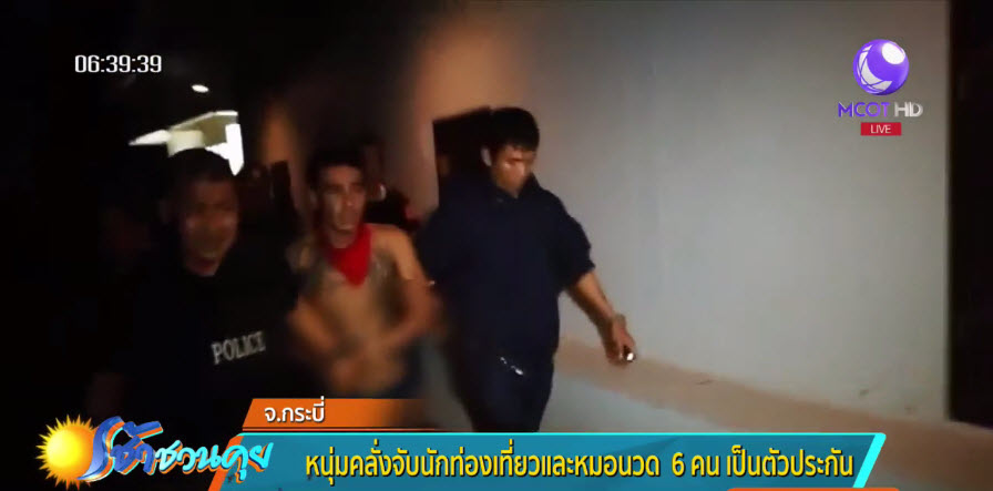 กระบี่ 11 ก.ค. -หนุ่มวัย 32 ปี เมาเสพยา คลั่งจับนักท่องเที่ยว-หมอนวด รวม 6 คน เป็นตัวประกัน ภายในร้านอาหารใน อ.อ่าวนาง จ.กระบี่ ยิงปืนขู่หลายนัด เจ้าหน้าที่เกลี้ยกล่อมจนยอมมอบตัว