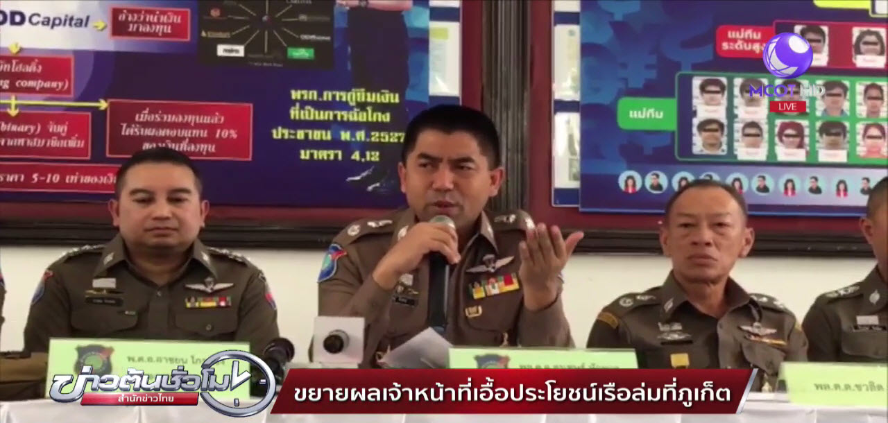 กทม.11 ก.ค.-รอง ผบช.ทท.ตรวจสอบพบทางหนี และระบบเดินเรือ 2 ลำ ซึ่งล่มที่ภูเก็ต ไม่มีความปลอดภัย เตรียมขยายผลเจ้าหน้าที่รัฐเอื้อประโยชน์