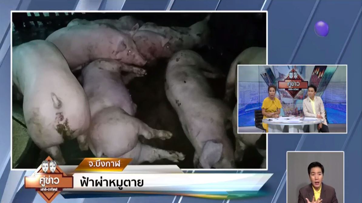 บึงกาฬ 14 ก.ค.- ฟ้าผ่าคอกหมูของชาวบ้าน อ.บึงโขงหลง จ.บึงกาฬ ได้รับความเสียหาย มีหมูตายเกือบ 10 ตัว