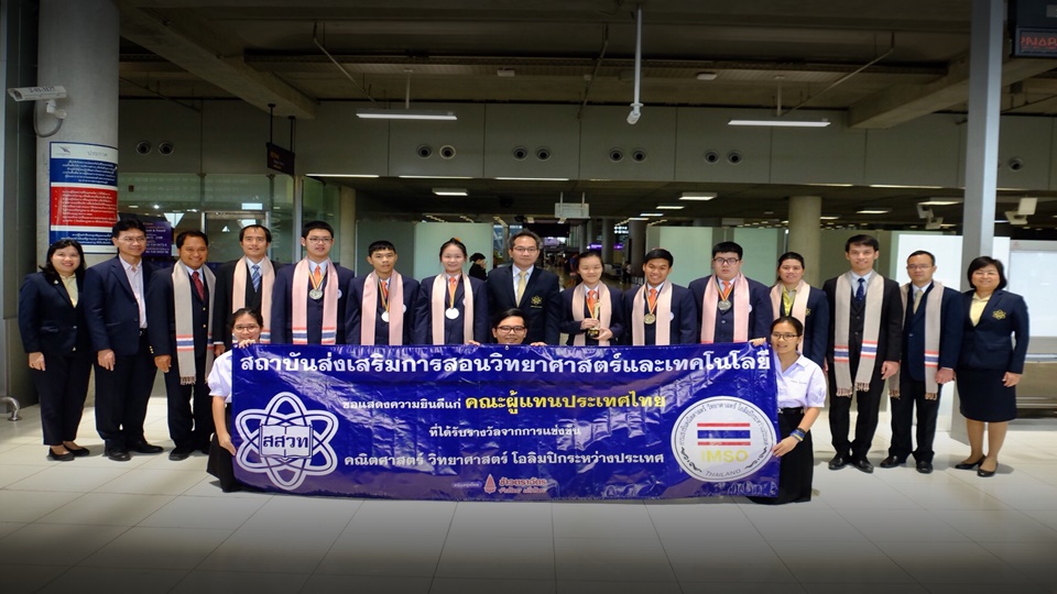 สุวรรณภูมิ 15 ก.ค.-ทีมเยาวชนร่วมแข่งขันคณิตศาสตร์โอลิมปิกระหว่างประเทศที่โรมาเนีย กลับไทยโดยสวัสดิภาพ สสวท.จัดพิธีรับอบอุ่น หลังคว้า 3 เหรียญทอง 3 เหรียญเงิน