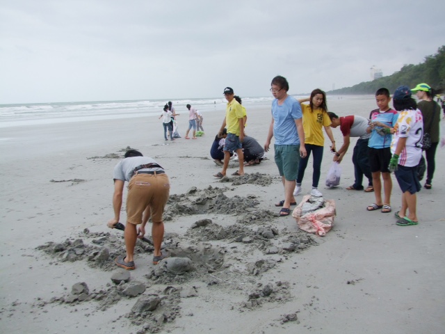 นายประยูร พงศ์พันธ์ หัวหน้าอุทยานแห่งชาติเขาแหลมหญ้า-หมู่เกาะเสม็ด ต.เพ อ.เมืองระยอง นำเจ้าหน้าที่เข้าตรวจสอบบริเวณชายหาดแม่รำพึง หลังรับแจ้งว่ามีคราบสีดำคล้ายยางมะตอยถูกคลื่นซัดเกลื่อนชายหาดตั้งแต่โค้งก้นอ่าวไปถึงหาดลานหินขาว เขตเทศบาลตำบลเพ ระยะทางกว่า 5 กม. พร้อมกันนี้กลุ่มรักษ์ เล ยอง Save Our Sea Rayong นำโดยนางรติกร เรืองอุไรฤกษ์ ได้นำเยาวชนเครือข่ายอนุรักษ์กว่า 100 คน ช่วยกันเก็บคราบสีดำดังกล่าวและขยะตามชายหาด เพื่อไม่ให้กระทบต่อสิ่งแวดล้อม