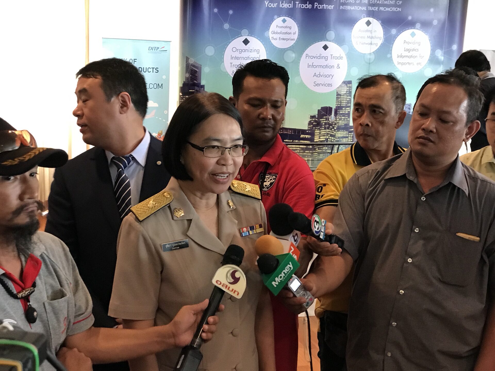 น.ส.ชุติมา บุณยประภัศร รัฐมนตรีช่วยว่ากระทรวงพาณิชย์ และนางจันทิรา ยิมเรวัต วิวัฒน์รัตน์ อธิบดีกรมส่งเสริมการค้าระหว่างประเทศ ร่วมเป็นสักขีพยานการลงนาม MOU ระหว่างบริษัท เมดิฟูดส์ และบริษัท เจอเจียงจงผานซีเรียลแอนด์ออยล์ พร้อมเร่งผลักดันข้าว กข 43 สู่ตลาดจีน ทั้งช่องทางการค้าปกติ และการขายผ่านระบบ e-Commerce บนเว็บไซต์ Tmall.com ภายใต้โครงการ “Thai Rice Flagship Store”