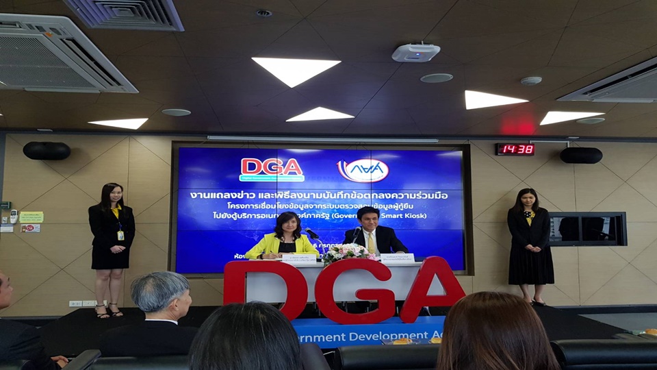 นายชัยณรงค์ กัจฉปานันท์ ผู้จัดการกองทุนเงินให้กู้ยืมเพื่อการศึกษา (กยศ.)และนางไอรดา เหลืองวิไล รองผู้อำนวยการสำนักงานพัฒนารัฐบาลดิจิทัล (สพร.) ร่วมลงนามบันทึกข้อตกลงความร่วมมือ ในการเชื่อมโยงข้อมูลจากระบบตรวจสอบข้อมูลผู้กู้ยืมไปยังตู้บริการอเนกประสงค์ภาครัฐ (Government Smart Kiosk)