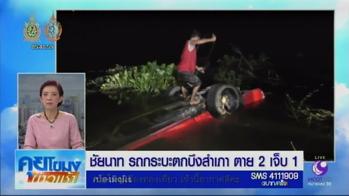 ชัยนาท 22 ก.ย.-ชาย 3 คนกลับจากกินเลี้ยงวันเกิดเพื่อน ขับรถกระบะตกบึงสำเภา จ.ชัยนาท หนีออกมาได้ 1 คน ส่วนอีก 2 คน ติดอยู่ในรถเสียชีวิต
