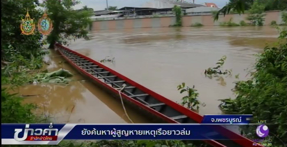 ตลอดทั้งวัน ได้ระดมเจ้าหน้าที่ช่วยกันค้นหาผู้สูญหายอีก 2 คน จากเหตุเรือยาวแม่มณีสายชล ล่มลงในแม่น้ำป่าสัก บริเวณหน้าวัดไตรภูมิ จ.เพชรบูรณ์ คือ นายอรรถพล พรมแสง อายุ 23 ปี และนายพิทยา ไผ่ทอง อายุ 18 ปี หลังเมื่อคืนวานนี้ได้ร่วมกับเพื่อนอีก 23 คน ฝึกซ้อมการพายเรือยาวทวนน้ำเพื่อเตรียมเข้าร่วมแข่งขันเรือยาวในช่วงปลายเดือนนี้ การค้นหาของเจ้าหน้าที่อาสาสมัครมูลนิธิร่มโพธิ์เพชรบูรณ์ได้แบ่งกำลังออกเป็น 4 ชุด ปฏิบัติการใช้เรือท้องแบน 4 ลำ ตระเวนค้นหาตามทางน้ำไหล แต่ยังไร้วี่แวว